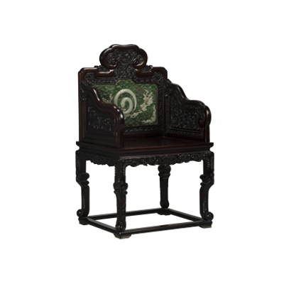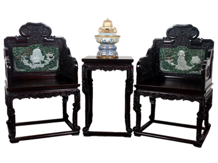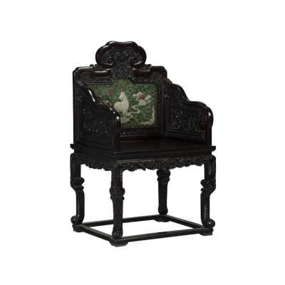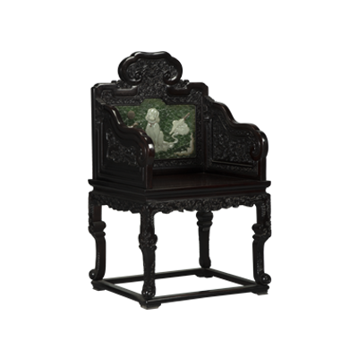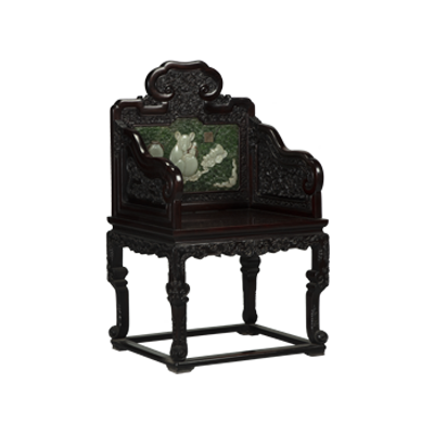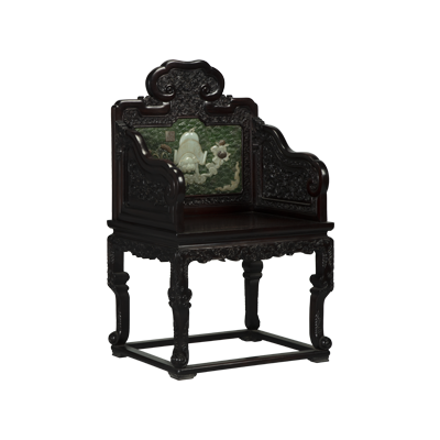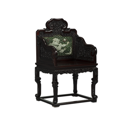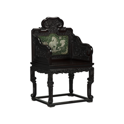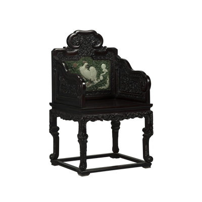 这套家具设计制作于2003年,正是中国家具行业兴盛模仿的年代。10年来,竟然不见相同的家具出现在市场上,足以证明这套红木镶玉12生肖太师椅的工艺难度,绝非一般红木匠人所能制作,是红木和玉雕技艺两者的结合。而深色的红木与翠绿的碧玉、洁白如脂的和田白玉相结合,其色彩突破了“沉闷”的视觉感受,变得明亮、富贵、高雅。