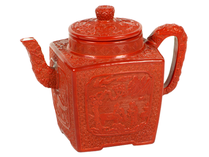 珍藏於故宫博物院的乾隆款紫砂漆雕壺,由鴻運齋採用景德鎮瓷雕工藝予以仿製。經博物院專家鑒定,此壺雖材質不同於紫砂,但瓷器鏤雕工藝已達到漆雕工藝質感,由故宫博物院監製,並限量製作。