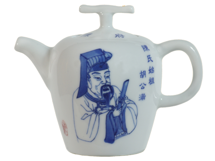 此壶为景德镇高白釉薄胎,壶的正面为每个姓氏的手绘始祖像,背面为这一姓氏如何产生的文字简介。壶的容量约100毫升,非常适宜沏泡乌龙、铁观音、普洱等茗茶。