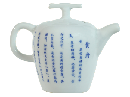 景德镇窑,从北宋至今的千余年,始终以青花瓷,名震世界。乳白的瓷器上,绘以单色的青釉,显得非常高贵雅致,为大多数瓷器爱好者追宠。百家姓青花瓷壶,特选用景德镇瓷,要给客人的就是这种艺术享受。