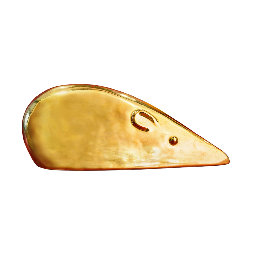 2008年, 鸿运斋和中国工艺美术大师刘远长联袂合作,由鸿运斋创意,刘远长大师创作雕塑艺术雕塑瓷“金鼠纳福”。每件作品,由大师采用镶器技术亲自制作,通体施本金约5克,并在底部落章和手书“刘远长”字迹。靠近尾部的一道弧线,赋予整件塑瓷以灵动之感。通体金亮的釉面,更显雍容华贵,让人爱不释手。