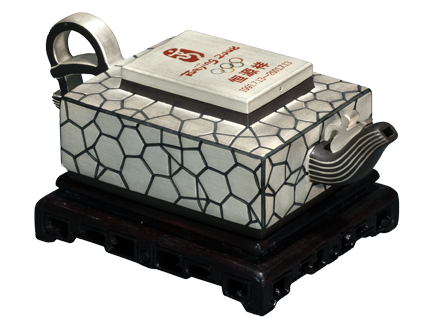 2007年12月30日,本斋艺术主创黄栋华与恒源祥总裁刘瑞旗,著名工艺美术设计师秦永福,专程赴北京观察了奥运水立方游泳馆,回沪半月秦永福拿出了“水立方”紫砂壶设计样稿。壶身以世界著名建筑水立方为样板,充水的魔方用纯银涂色,这也是紫砂壶历史上首次涂银,经800度炉火烧制打磨后,耀眼的水立方银光,与壶盖、壶身之间的凹线,以及壶嘴壶把与壶底的紫砂条线,更彰显出黑白两色的时尚,经典高雅,给人一种强烈的艺术视觉享受。而更令收藏者惊讶的是,水立方建筑制成紫砂壶是如此的天地合一,巧夺天工。再瞧壶把,粗看以为是龙头,仔细欣赏原来是游泳健将在水中劈波斩浪,而壶把是一位跳水健儿,抱腿在空中做潇洒的翻滚动作。这一设计在非常实用的价值中,突出了水立方紫砂壶的艺术构思,做到了艺术与实用的完美结合,是整把紫砂壶的最大亮点,并大大提升了水立方壶的艺术价值与文物价值。国际奥林匹克博物馆Didier Blanchardf副馆长,以及其他官员看了样壶,拍案称奇,并欣然接受196号与200号两把水立方壶,作为馆藏文物珍藏。