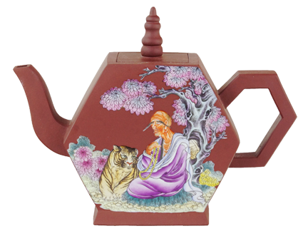 纳纳答密答答喇尊壶由黄栋华创意,房婷婷设计,吴益春制壶,江西省工美大师夏忠勇书写佛语。