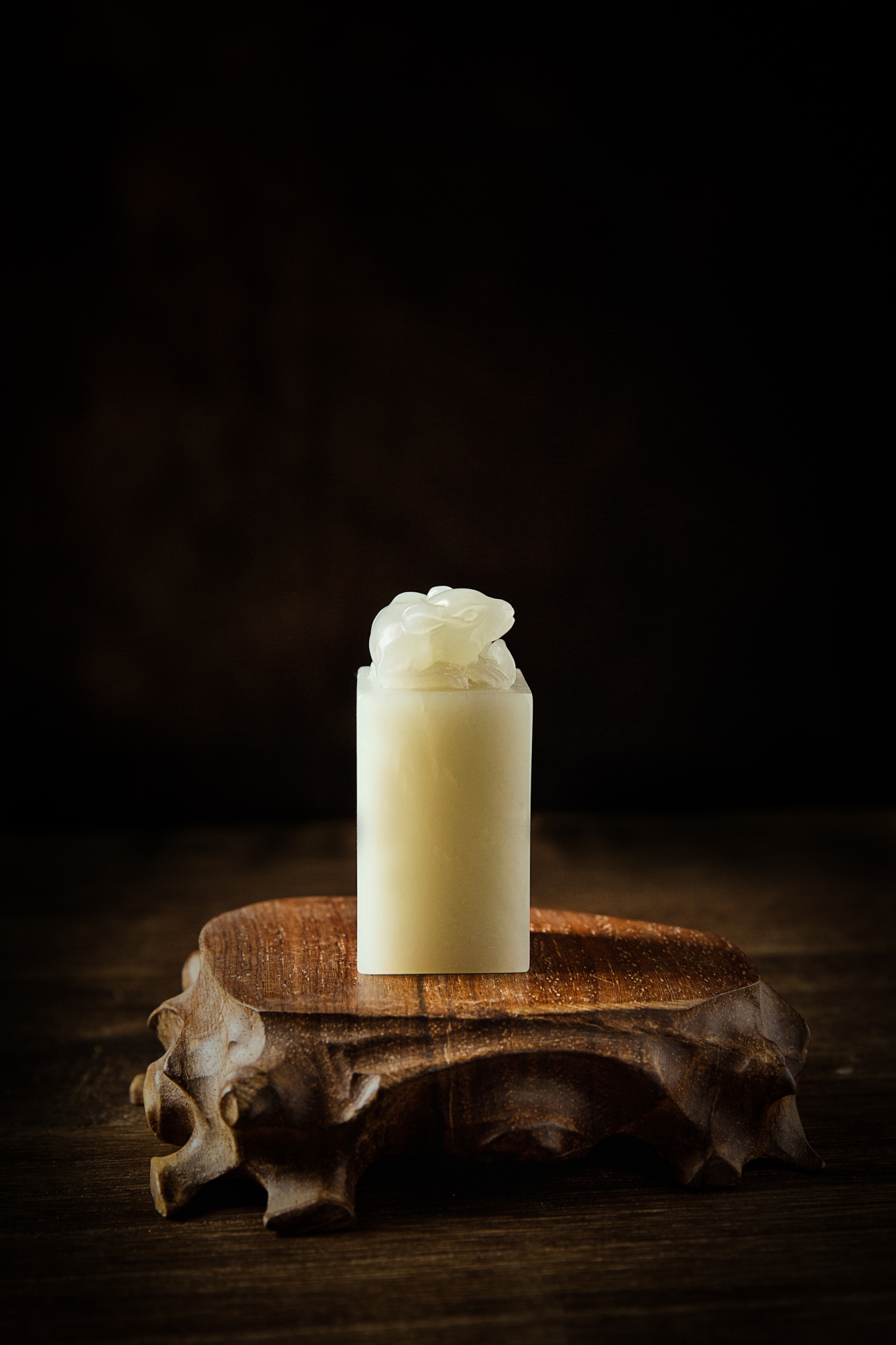 为助国风,鸿运斋开发创意的十二生肖全套印章,高约56mm,25*25mm见方(由于纯手工制作,尺寸以实物为准),使用上等和田山料白玉,玉质温润细腻,似上等寿山石中的栗子冻,但礼法规格又高于寿山石。为彰显此套印章的精英血统,印纽与印章的设计与雕刻,均由上海工艺美术大师韩荣昌亲自操刀,十二种动物栩栩如生,深得盛唐气象之神韵。
