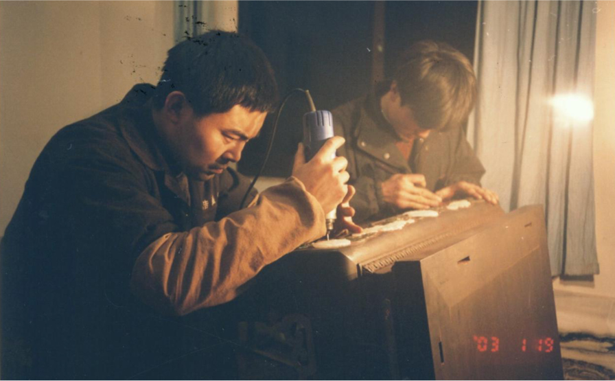 (2003年鸿运斋携扬州玉雕师傅复制乾隆紫檀镶玉嵌珐琅宝座)